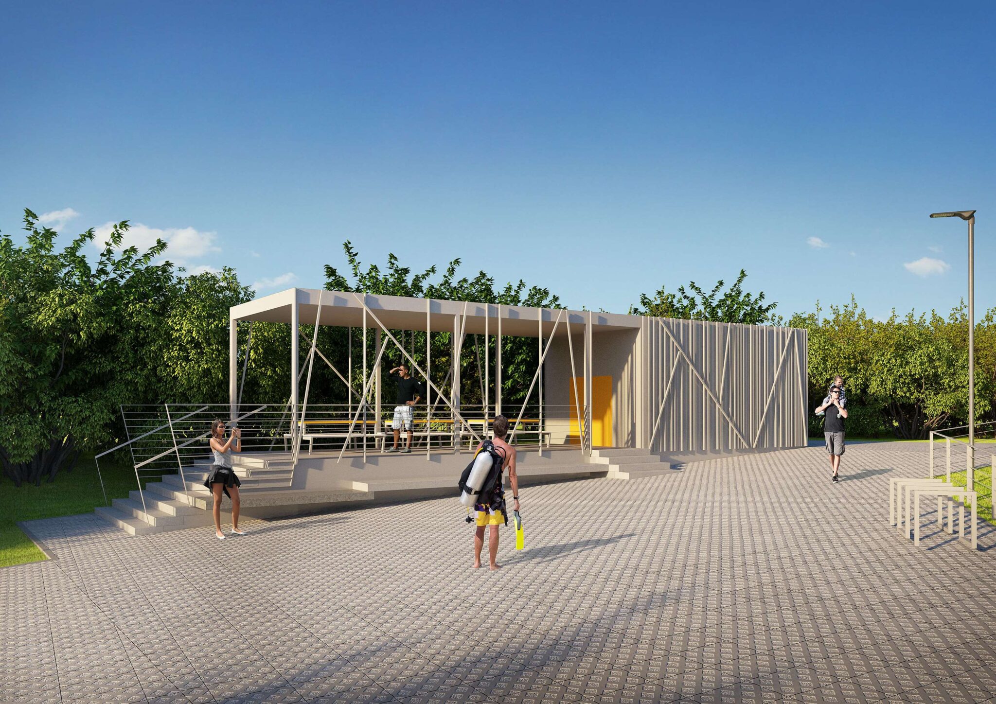 BUDYNKI USŁUGOWE STANICA NURKÓW Kamionka Piast Opole. Budynek rekreacyjno-pomocniczy użytku ekologicznego i terenów zielonych Kamionka Piast. powrót